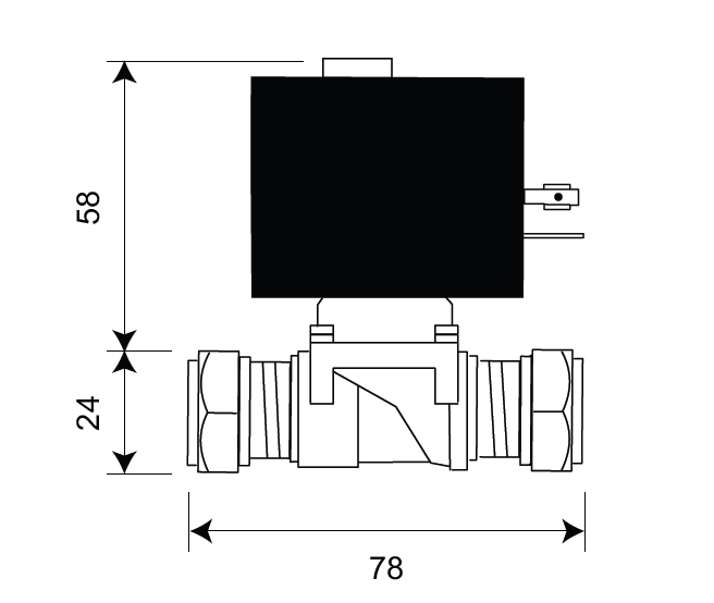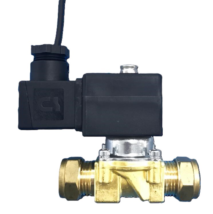 24 Volt DC normally closed valve with brass body. 12.7mm orifice with compression fittings for 15mm pipe. Comes with valve connector and A3000 cable.