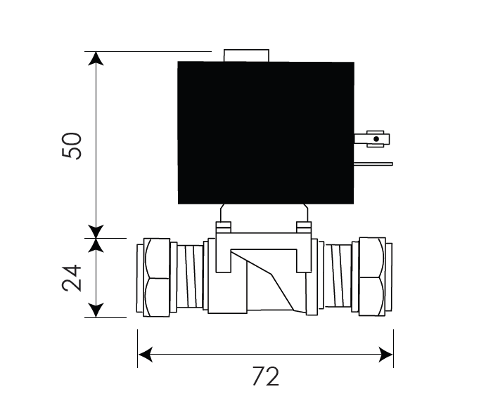 6V DC Latching valve with brass body. 2mm Orifice with compression fittings for 15mm pipe.