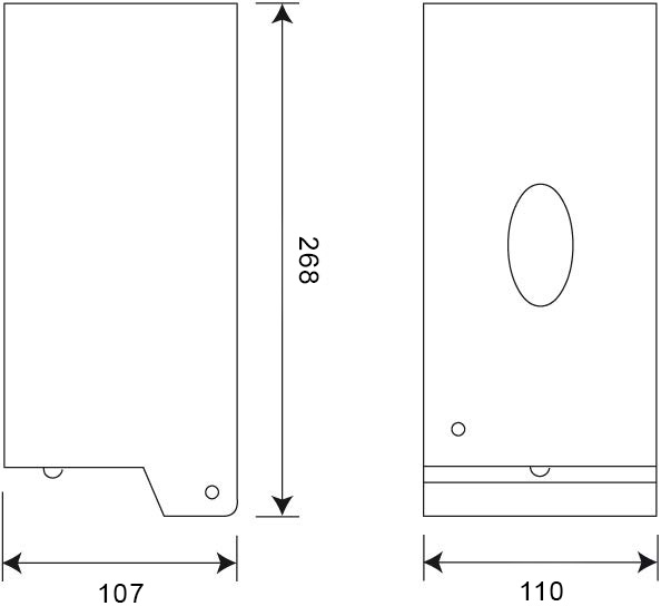 operation, LED display shows battery status, requires 3 pieces C Cell Alkaline (DC 4.5V) batteries , suitable for liquid soap and lotions, includes 800 ml refill tank, dispenses 1 – 1.5ml depending on soap, includes mounting materials and key for lockable front panel.
